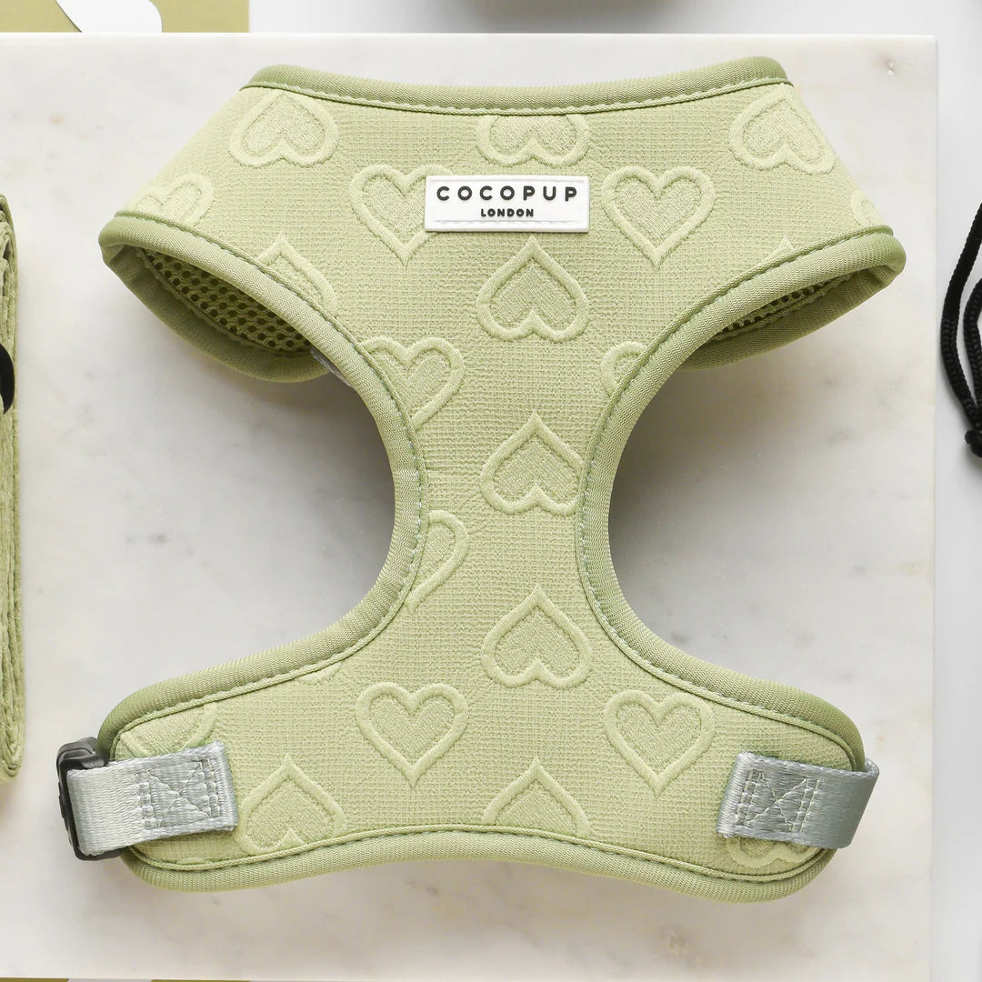 Walk your fur baby in style with our Luxe Adjustable Neck Harness – Sage Heart! This harness has a super cute 3D embroidery heart print in sage and is fully adjustable for the perfect fit on your pup. Let your canine fashionista strut in confidence and comfort!